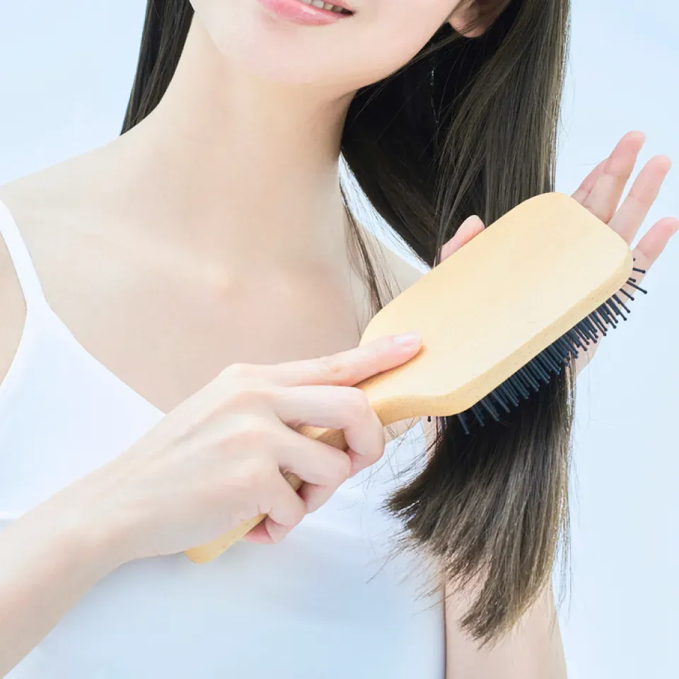 Step1ブラッシング入浴前にブラッシングで、地肌の汚れを浮かせ髪の流れを整えることで、より洗い上がりの質感が整います。