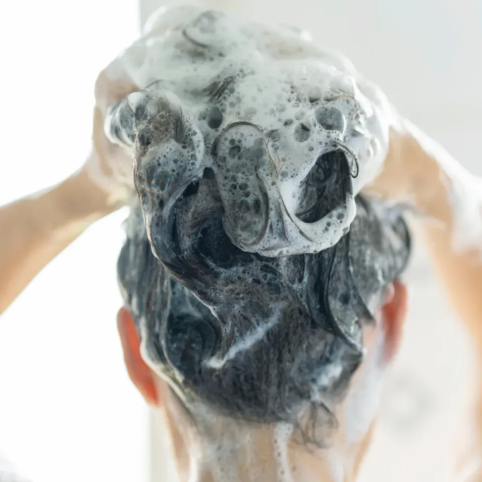 Step3シャンプーシャンプーを適量手にとり、よく泡立ててから、髪全体に馴染ませ、頭皮をマッサージするように洗い、よくすすいでください。